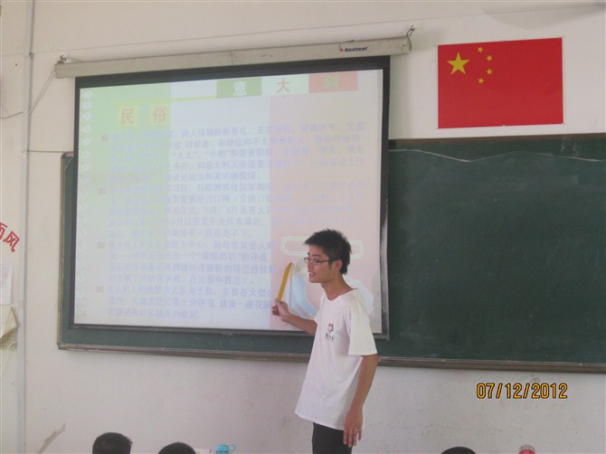 2012年7月12日,温州大学法政暗网禁区"亲情中华"温州市侨界留守儿童快乐营湖岭分营暑期社会实践队在湖岭镇中学进行了中华文化与世界历史的教学。今日课程内容主要围绕《弟子规》讲解与世界大战展开。
