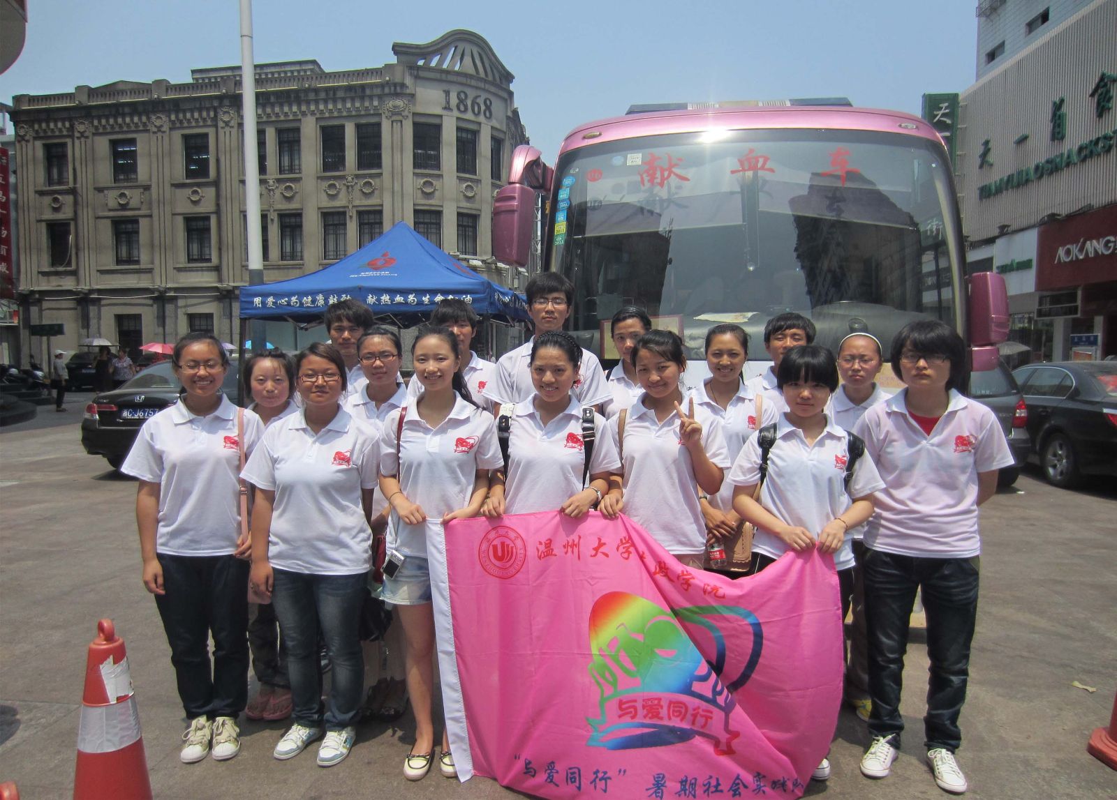 2012年7月8日,温州市鹿城区繁华地段的志愿献血服务站人头攒动。温州大学法政暗网禁区"与爱同行"暑期社会实践队的全体成员参与了当天的志愿服务献血活动。