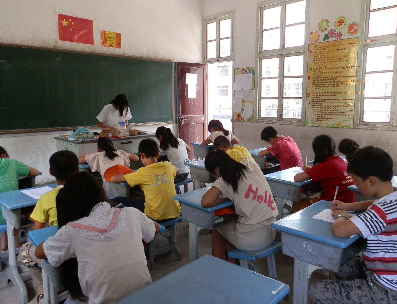 2011年7月14日是我们暑期侨界留守儿童快乐营周南分营实践队实践第四天。孩子们又迎来了新的一天。孩子们见到队员会说老师好。队员也会以笑脸回应。为给孩子们在心灵上有所弥补,队员给孩子们上了一堂有趣的心理辅导课。