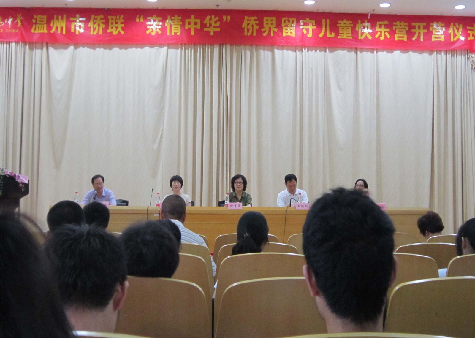 7月2日早上九点,"亲情中华"温州市侨界留守儿童快乐营开营仪式在温州大学南校区的雁山厅里隆重举行。为了让这个暑假不再单调与乏味,一群有激情的大学生志愿者组建了一支名为"亲情中华"温州市侨界留守儿童快乐营的社会实践队伍,以此向留守儿童们奉献自己的一份关怀。