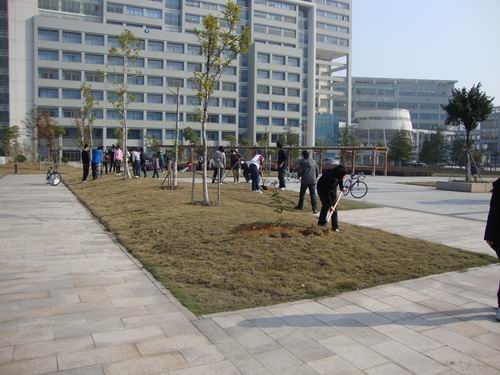 活动结束后,我们采访了参加植树的一位同学,他回答说:"弘扬恩来精神,构建和谐校园,是我们每个大学生应尽的义务。"